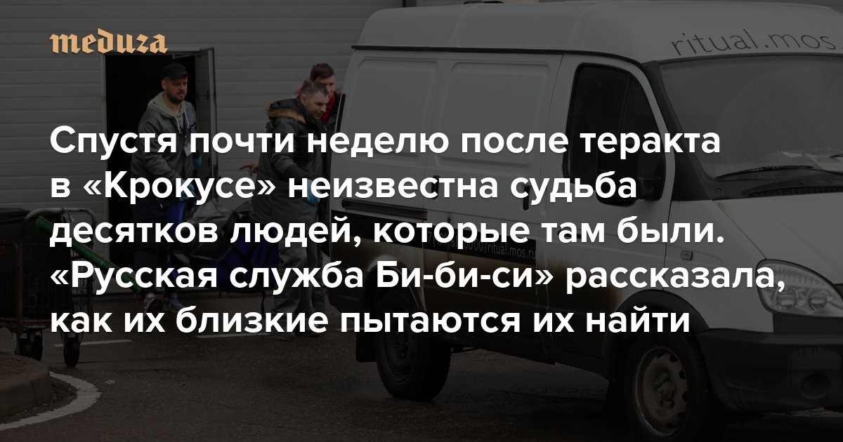 Спустя почти неделю после теракта в «Крокусе» неизвестна судьба десятков людей, которые там были «Русская служба Би-би-си» рассказала, как их близкие пытаются их найти