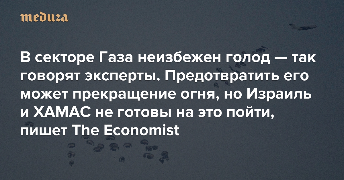 The Economist называет самым быстрым способом предотвратить голод временное прекращение огня в секторе Газа. Израиль отверг резолюцию ООН, призывающую к такому решению, так как это не приведет к освобождению 134 человек, остающихся в заложниках у боевиков ХАМАС. В свою очередь ХАМАС отклонил предложение о перемирии на шесть недель, которое подразумевало освобождение 40 израильских заложников и сотен палестинских заключенных, содержащихся в израильских тюрьмах. «Увязнув в смертельной битве, обе стороны, видимо, готовы позволить населению Газы голодать», — заключает The Economist.