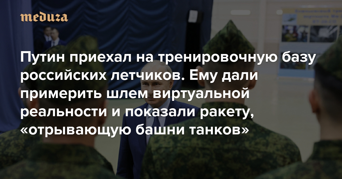 Путин приехал на тренировочную базу российских летчиков. Ему дали примерить шлем виртуальной реальности и показали ракету, «отрывающую башни танков» Семьсот шестьдесят четвертый день войны. Фотографии