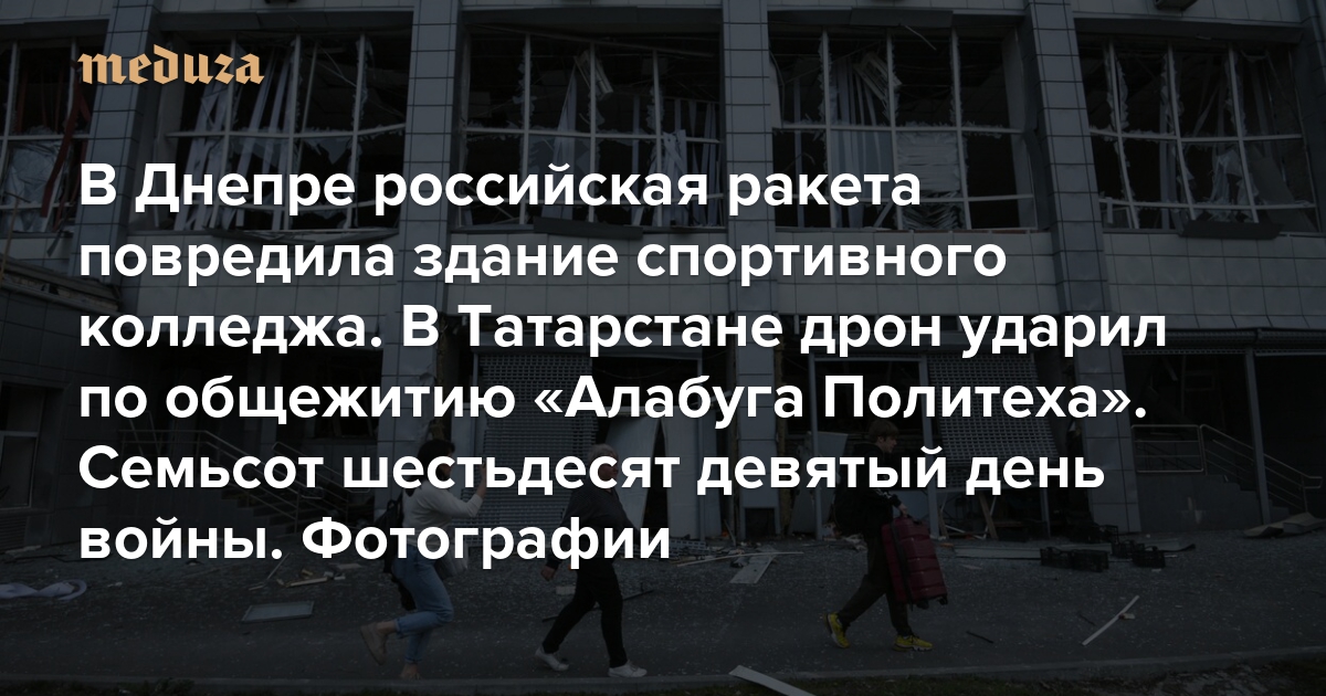 В Днепре российская ракета повредила здание спортивного колледжа. В Татарстане дрон ударил по общежитию «Алабуга Политеха» Семьсот шестьдесят девятый день войны. Фотографии