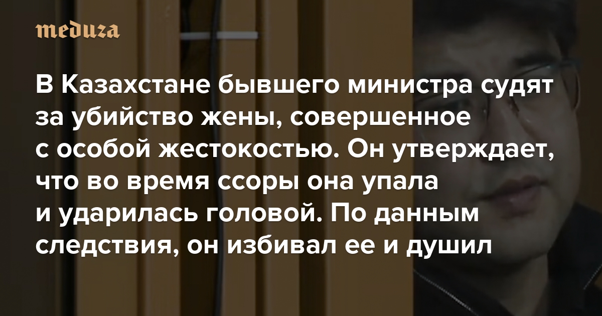 В Казахстане бывшего министра судят за убийство жены, совершенное с особой жестокостью Он утверждает, что во время ссоры она упала и ударилась головой. По данным следствия, он избивал ее и душил