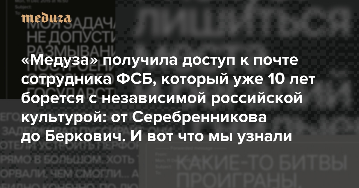 «Медуза» получила доступ к почте сотрудника ФСБ, который уже 10 лет борется с независимой российской культурой: от Серебренникова до Беркович И вот что мы из нее узнали