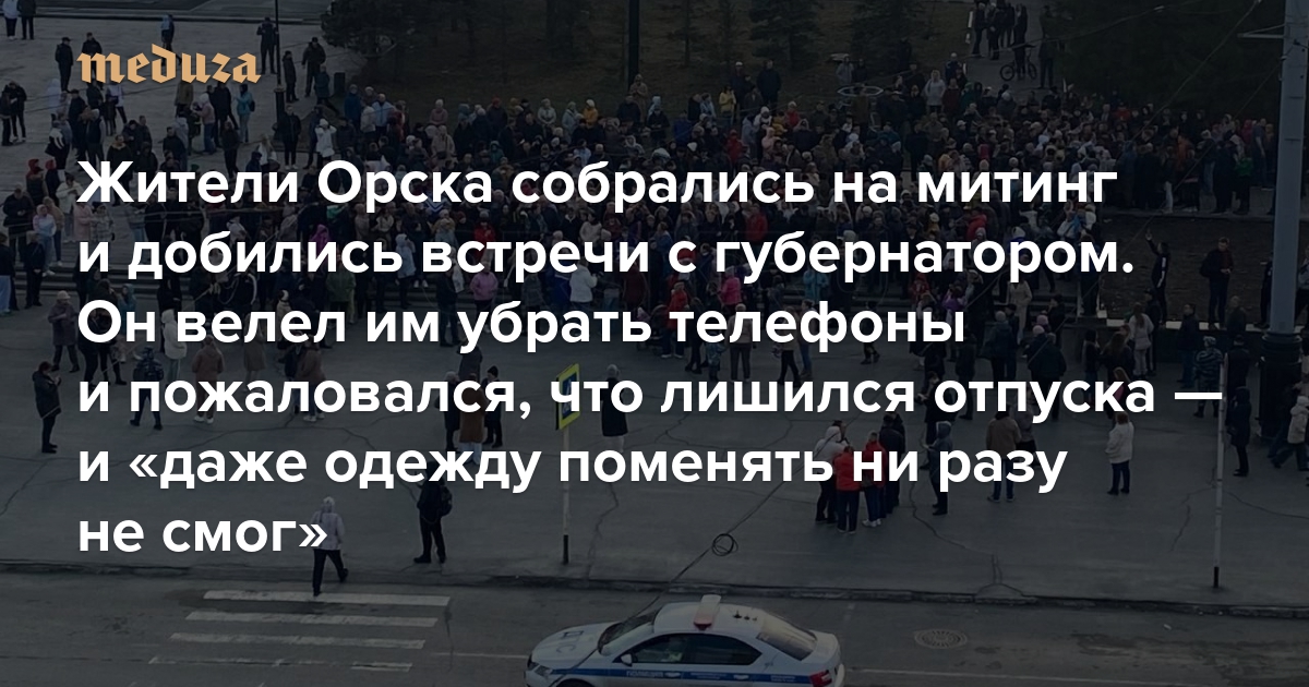 Жители Орска собрались на митинг и добились встречи с губернатором Он велел им убрать телефоны и пожаловался, что лишился отпуска — и «даже одежду поменять ни разу не смог»