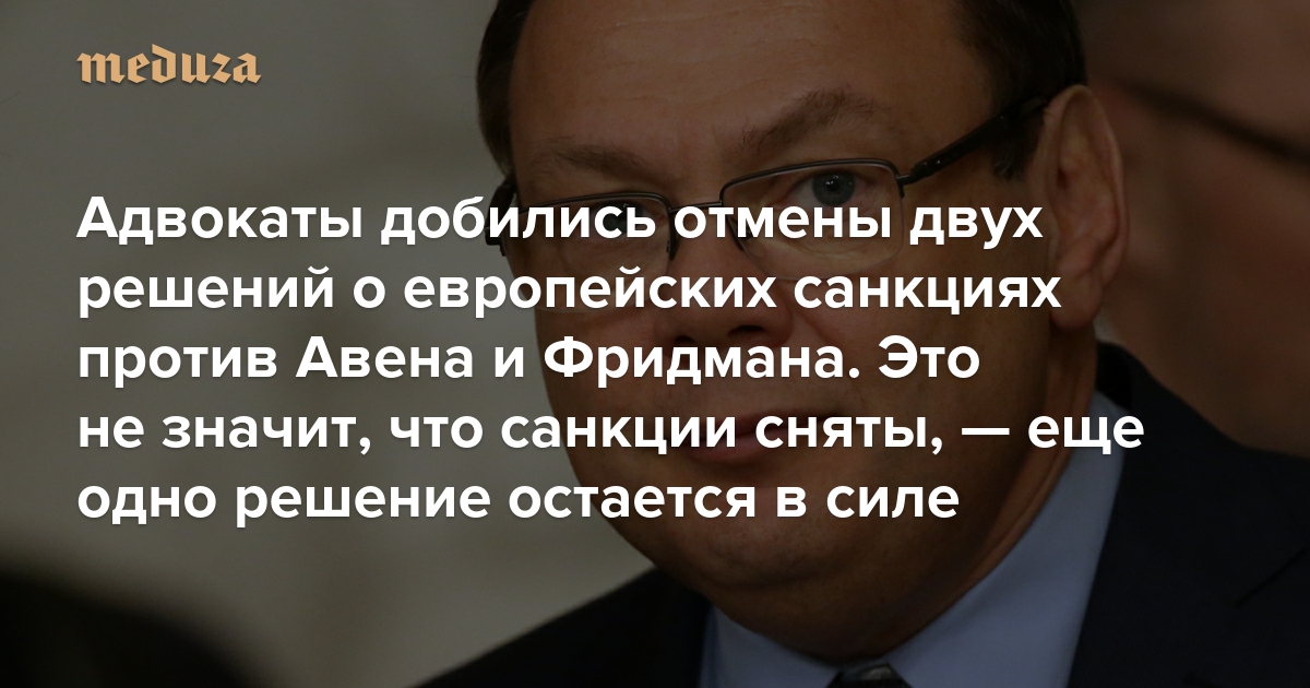 Изначально российские издания, в том числе «Медуза», сообщили, что решение суда отменяет санкции ЕС в отношении Авена и Фридмана. Но это не так. Решение суда затронуло первоначальный документ Совета ЕС от 28 февраля 2022 года, которым против Авена и Фридмана ввели санкции, и акт о продлении ограничений от 14 сентября 2022-го.