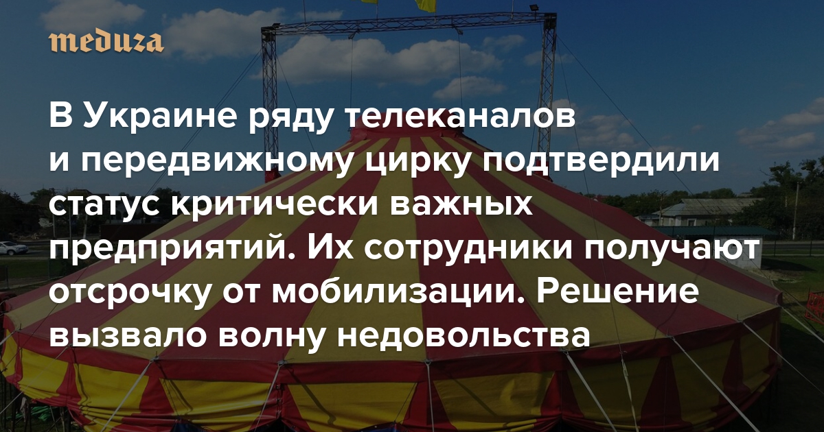В Украине ряду телеканалов и передвижному цирку подтвердили статус критически важных предприятий. Их сотрудники получают отсрочку от мобилизации Решение вызвало волну недовольства. Министра культуры «возмутил хейт»