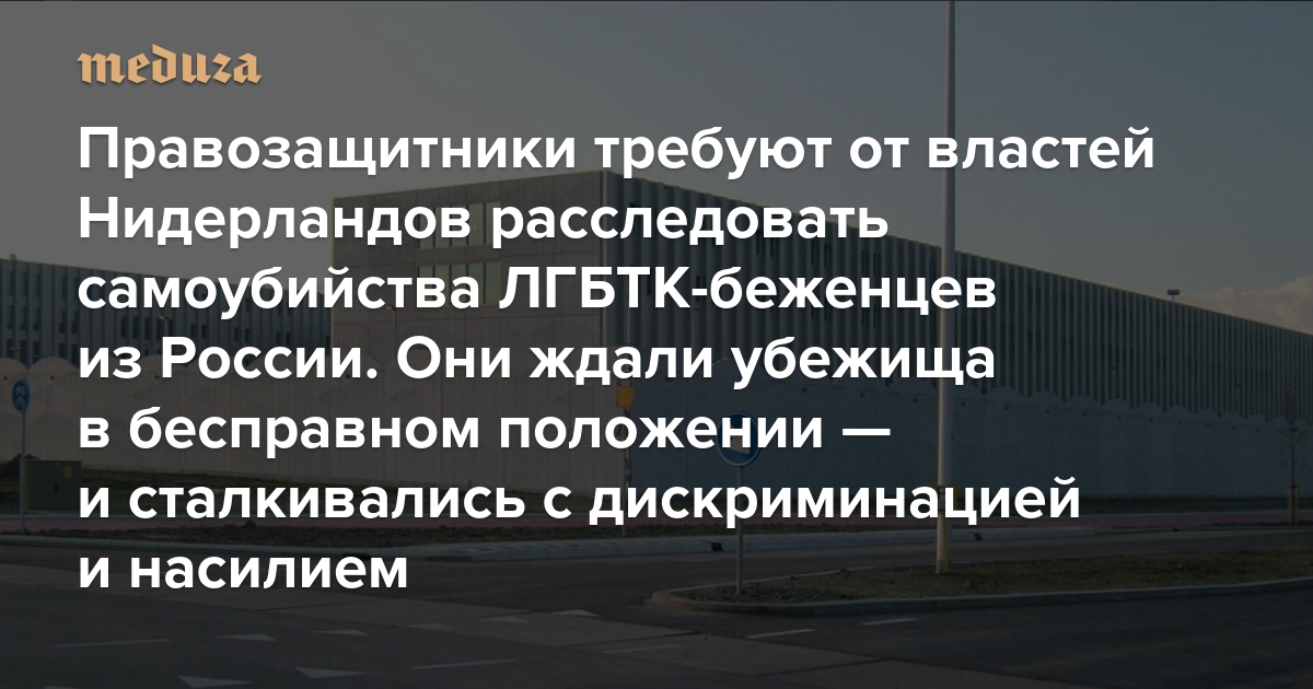 «Некоторые выходят из лагеря седыми» Правозащитники требуют от властей Нидерландов расследовать самоубийства ЛГБТК-беженцев из России. Они ждали убежища в бесправном положении — и сталкивались с дискриминацией и насилием