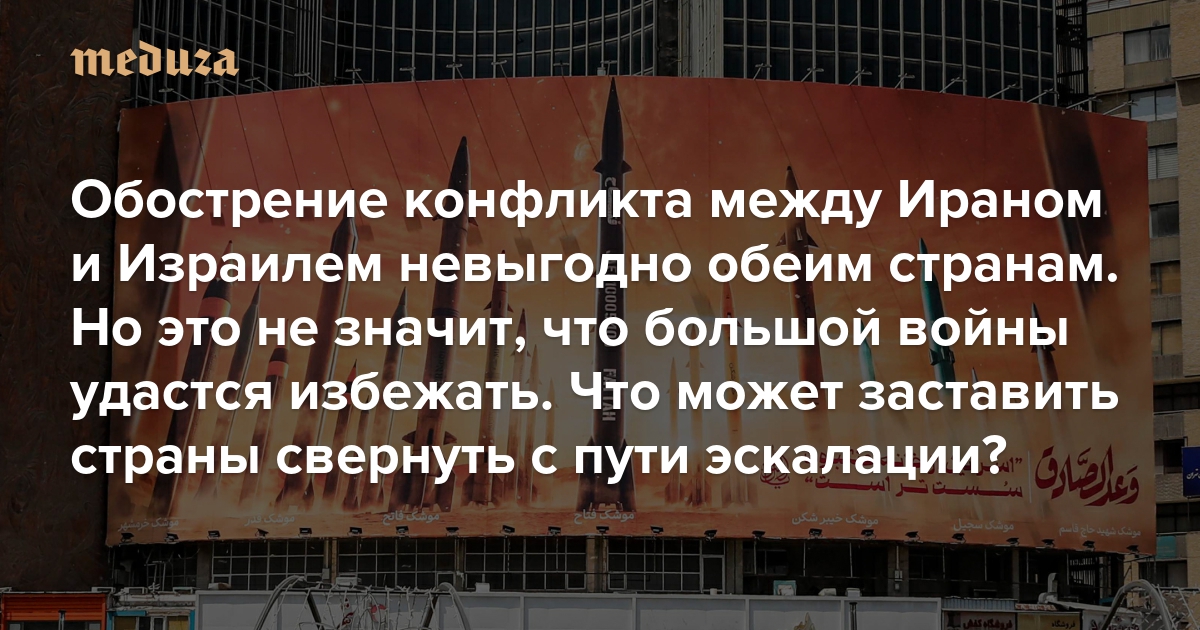 Обострение конфликта между Ираном и Израилем невыгодно обеим странам. К сожалению, это не значит, что большой войны удастся избежать Что может заставить страны свернуть с пути эскалации?