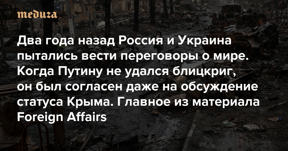 Два года назад Россия и Украина пытались вести переговоры о мире. Когда Путину не удался блицкриг, он был согласен даже на обсуждение статуса Крыма Главное из материала Foreign Affairs