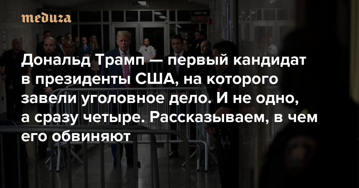Дональд Трамп — первый кандидат в президенты США, на которого завели уголовное дело. И не одно, а сразу четыре (Коротко) рассказываем, в чем его обвиняют — и как это влияет на его соперничество с Байденом