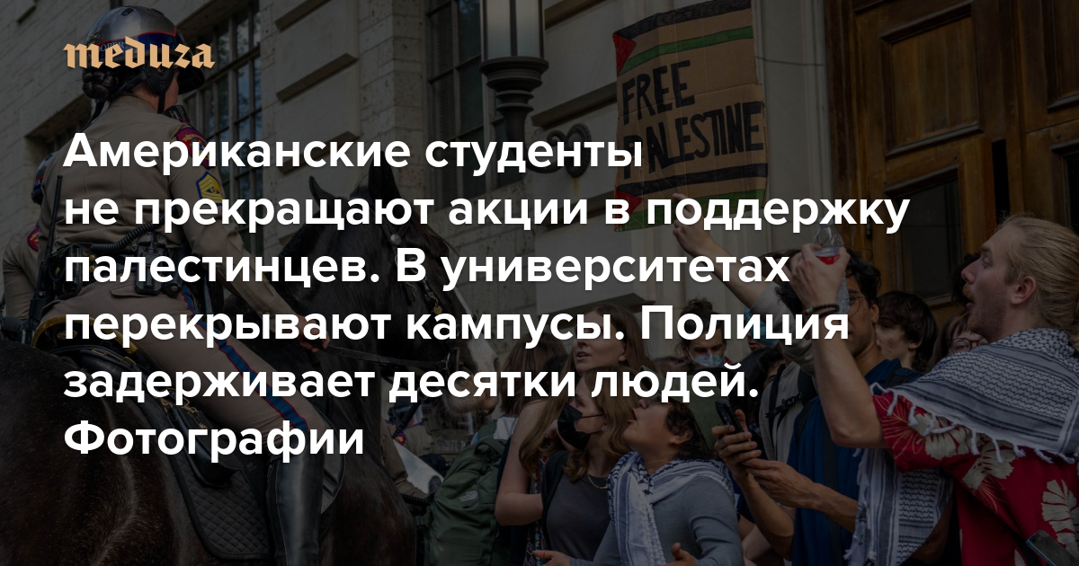 Американские студенты не прекращают акции в поддержку палестинцев. В университетах перекрывают кампусы. Полиция задерживает десятки людей Фотографии