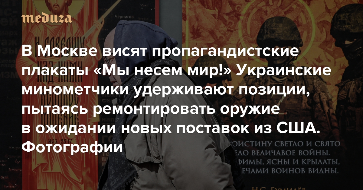 В Москве висят пропагандистские плакаты «Мы несем мир!» Украинские минометчики удерживают позиции, пытаясь ремонтировать оружие в ожидании новых поставок из США Семьсот девяносто второй день войны. Фотографии
