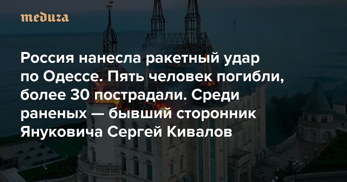 Россия нанесла ракетный удар по Одессе. Пять человек погибли, более 30 пострадали Среди раненых — бывший сторонник Януковича Сергей Кивалов. Его называли одним из возможных кандидатов на пост главы города в случае российской оккупации