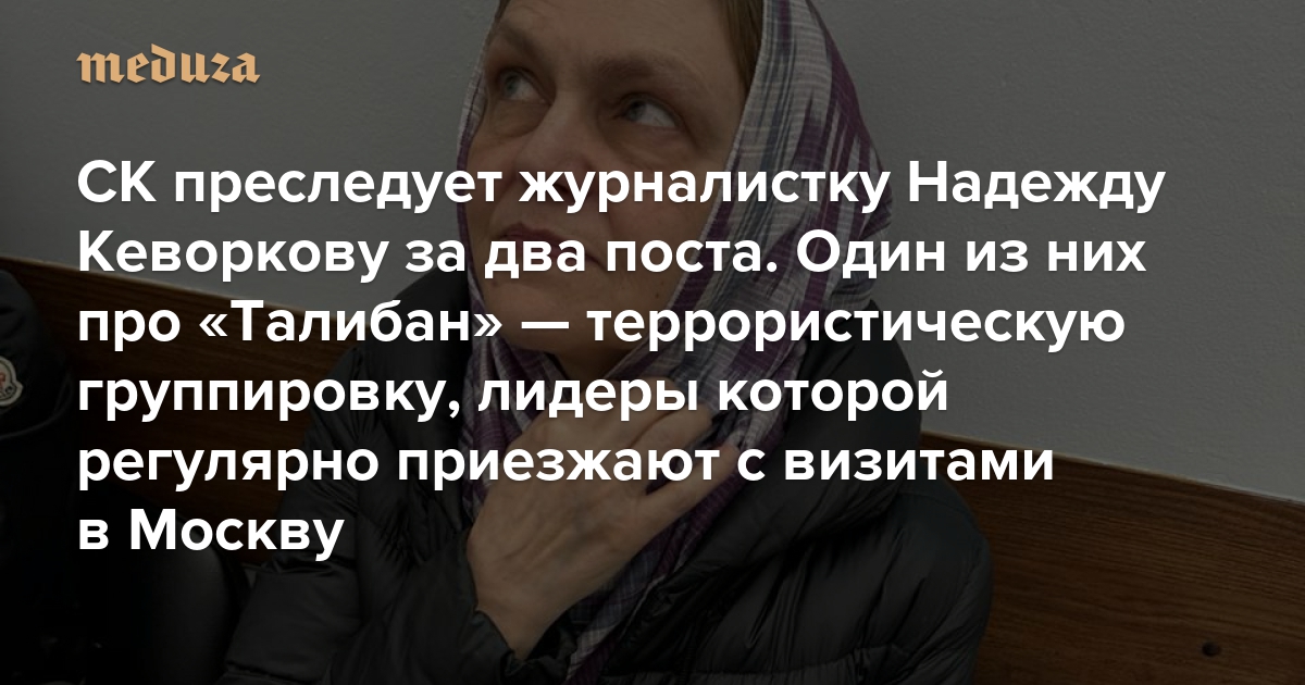 СК преследует журналистку Надежду Кеворкову за два поста. Один из них про «Талибан» — террористическую группировку, лидеры которой регулярно приезжают с визитами в Москву С ними встречались Лавров и другие чиновники