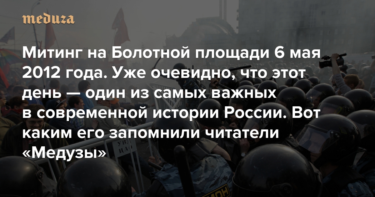 «Стало понятно, что с мечтами пора завязывать» Митинг на Болотной площади 6 мая 2012 года. Уже очевидно, что этот день — один из самых важных в современной истории России. Вот каким его запомнили читатели «Медузы»