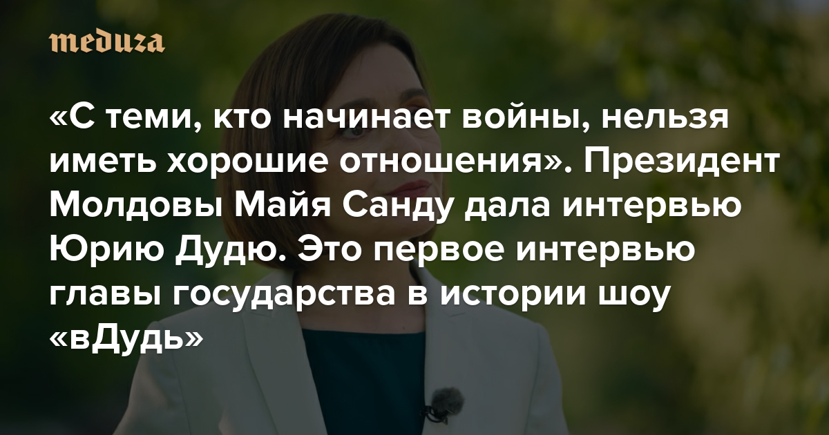 «С теми, кто начинает войны, нельзя иметь хорошие отношения» Президент Молдовы Майя Санду дала интервью Юрию Дудю. Это первое интервью главы государства в истории шоу «вДудь»