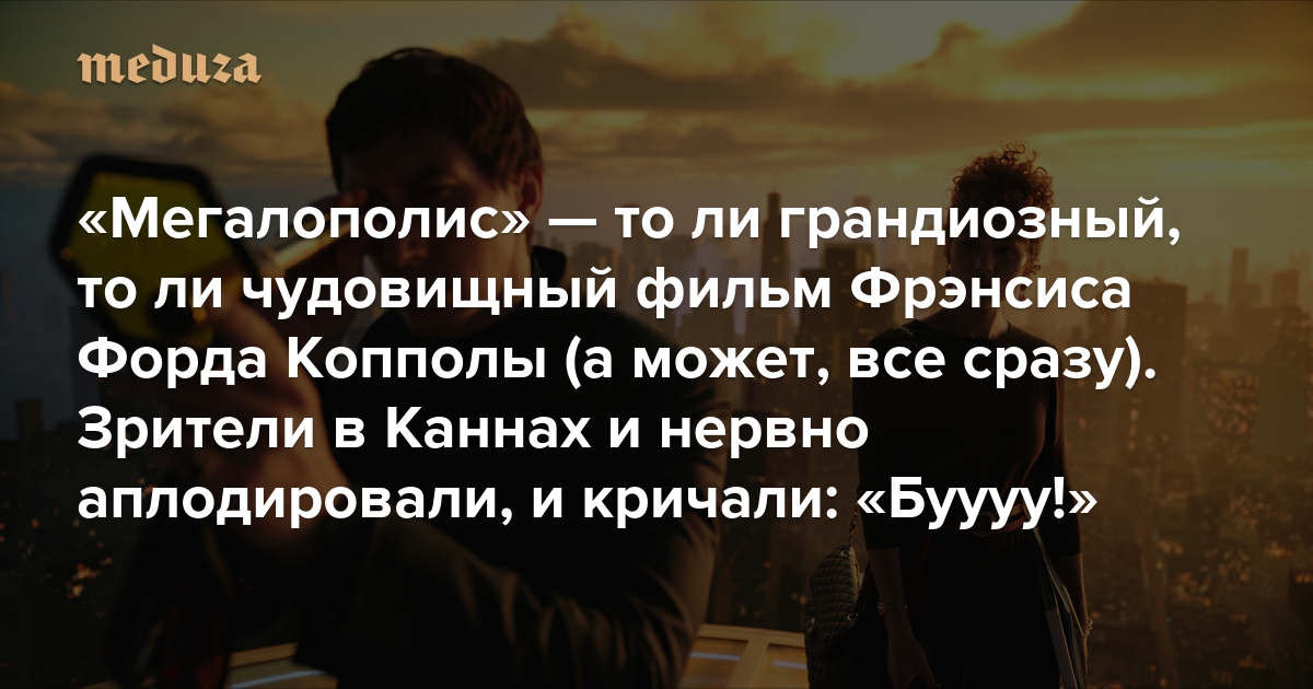 «Мегалополис» — то ли грандиозный, то ли чудовищный фильм Фрэнсиса Форда Копполы (а может, все сразу) Зрители в Каннах и нервно аплодировали, и кричали: «Буууу!»