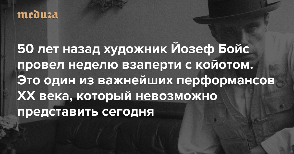 50 лет назад художник Йозеф Бойс провел неделю взаперти с койотом Это один из важнейших перформансов XX века, который невозможно представить сегодня. Что это за койот, откуда и что с ним было потом — до сих пор неизвестно