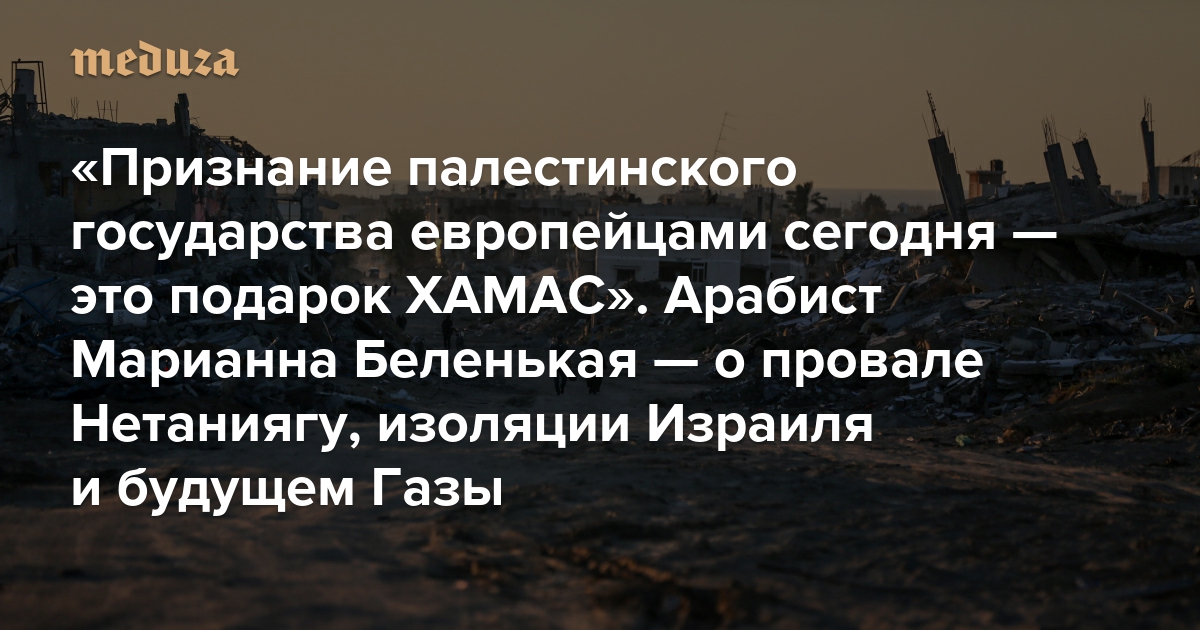 «Признание палестинского государства европейцами сегодня — это подарок ХАМАС» Арабист Марианна Беленькая — о дипломатическом провале Нетаниягу, изоляции Израиля и будущем Газы