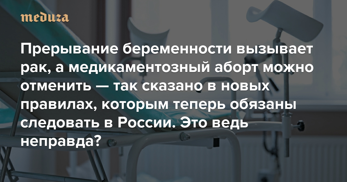 Общество акушеров-гинекологов: прерывание беременности вызывает рак, а медикаментозный аборт можно и отменить. «Медуза»: 😟 🤦♀️😡 Публикуем фактчек новых правил, которым теперь обязаны следовать в России