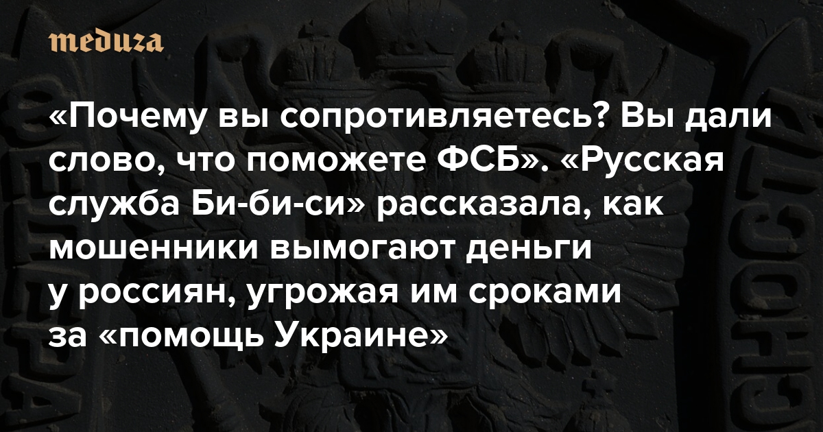 «Почему вы сопротивляетесь? Вы дали слово, что поможете ФСБ» «Русская служба Би-би-си» рассказала, как мошенники вымогают деньги у россиян, угрожая им сроками за «помощь Украине»