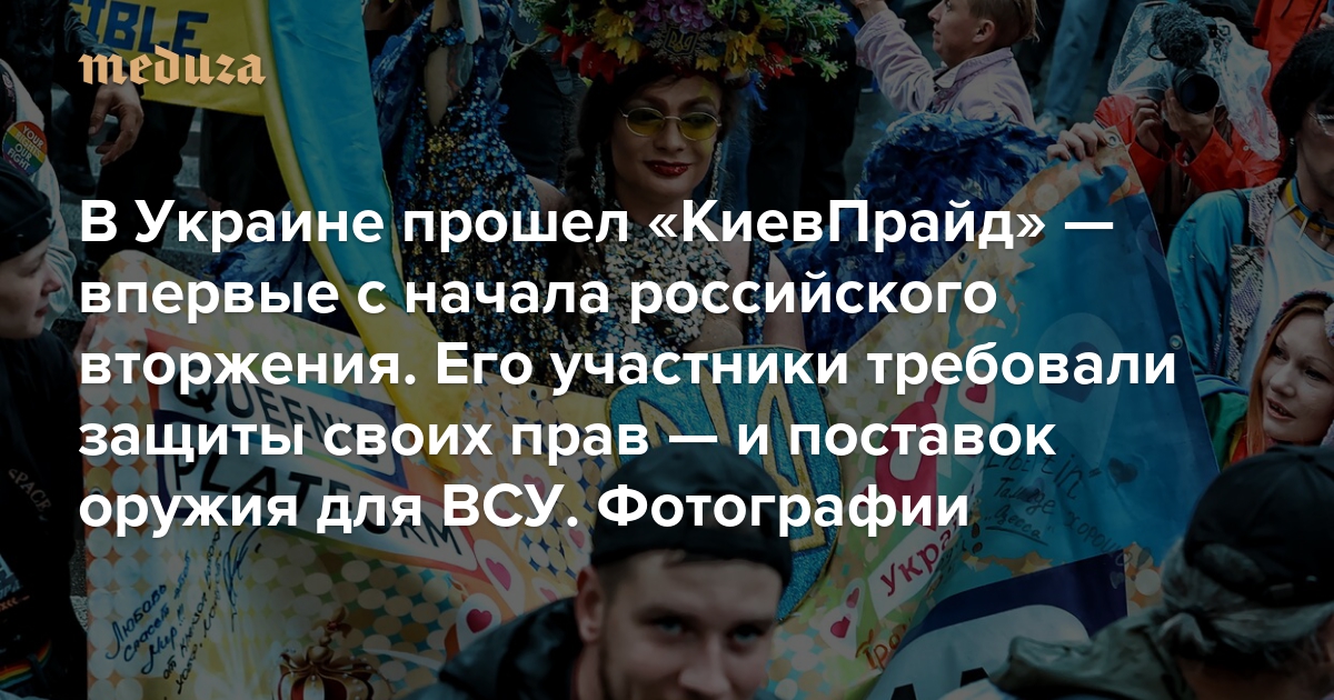 В Украине прошел «КиевПрайд» — впервые с начала российского вторжения. Его участники требовали защиты своих прав — и поставок оружия для ВСУ Восемьсот сорок четвертый день войны. Фотографии
