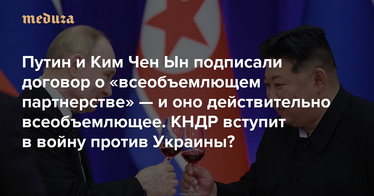 Центральное телеграфное агентство Кореи (ЦТАК) опубликовало полный текст Договора о всеобъемлющем стратегическом партнерстве, который 19 июня подписали Владимир Путин и лидер КНДР Ким Чен Ын. Это произошло в ходе визита президента РФ в Северную Корею — первого с 2000 года. Во время предыдущей командировки Путина в КНДР Москва и Пхеньян заключили Договор о дружбе, добрососедстве и сотрудничестве. «Медуза» рассказывает, что нужно знать о новом документе, после подписания которого отношения между двумя странами определенно станут ближе и теплее.