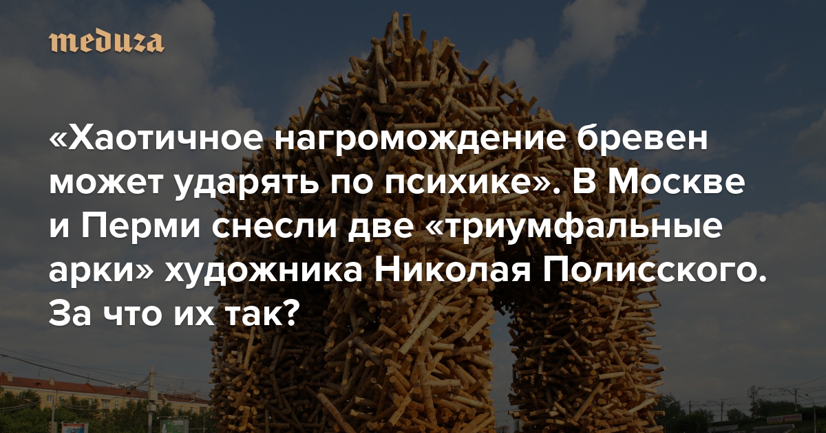 «Хаотичное нагромождение бревен может ударять по психике» В Москве и Перми снесли две «триумфальные арки» художника Николая Полисского. За что их так?
