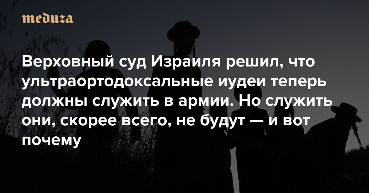 Верховный суд Израиля решил, что ультраортодоксальные иудеи теперь должны служить в армии. Но служить они, скорее всего, не будут И вот почему