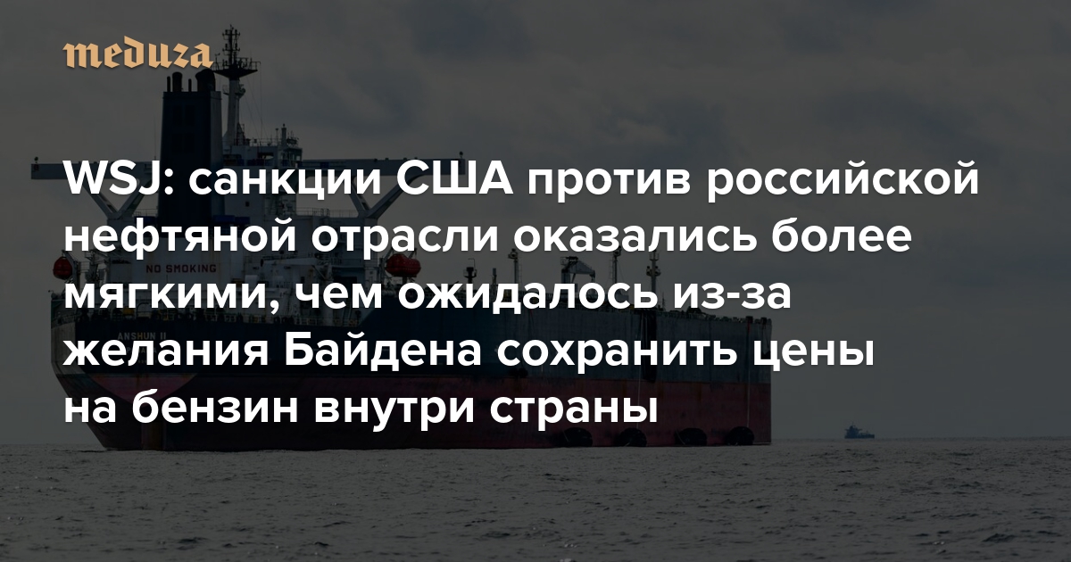 WSJ: санкции США против российской нефтяной отрасли оказались более мягкими, чем ожидалось Причина — желание Байдена сохранить стабильные цены на бензин внутри страны перед выборами