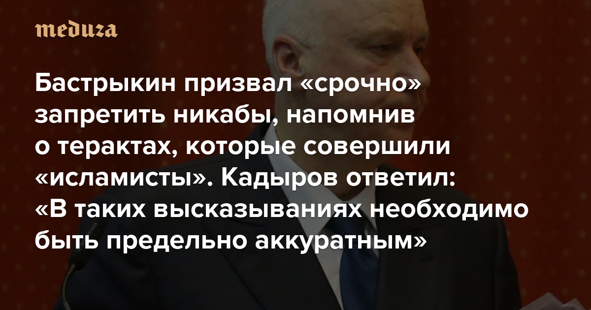 Бастрыкин призвал «срочно» запретить никабы в России, напомнив о терактах, которые совершили «исламисты» Кадыров ответил: «В таких высказываниях необходимо быть предельно аккуратным»