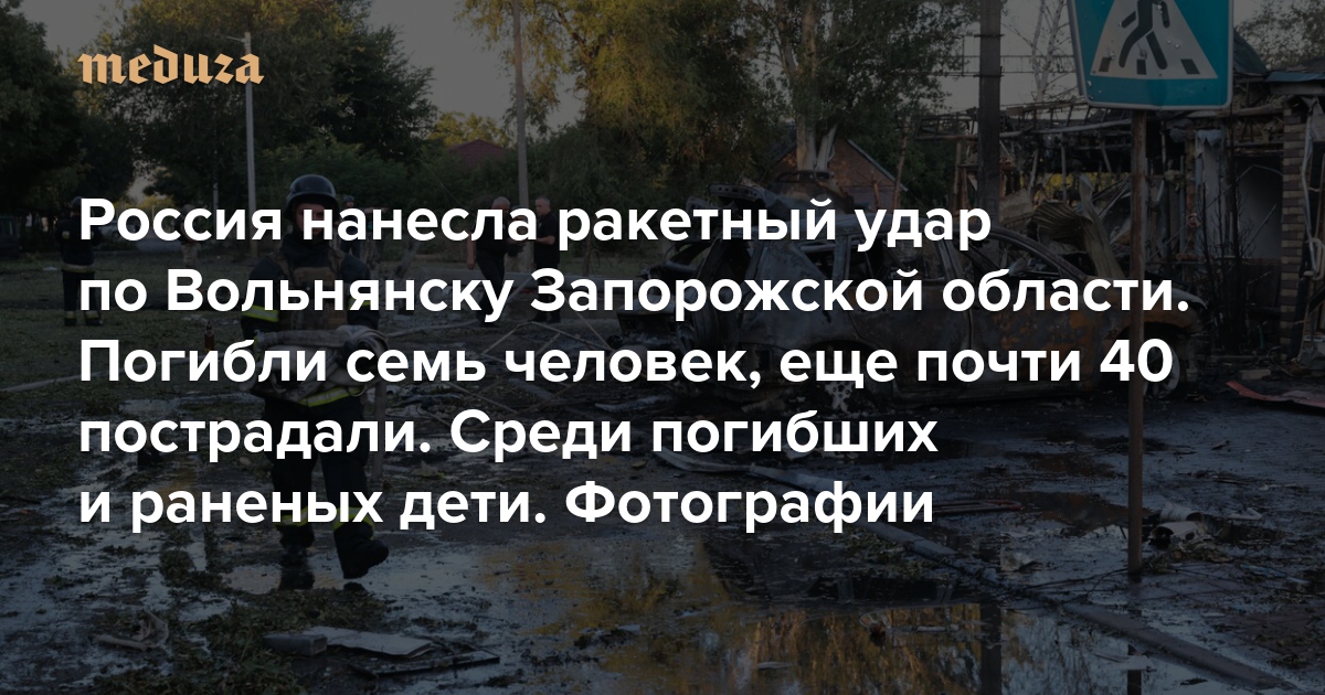 Россия нанесла ракетный удар по Вольнянску Запорожской области. Погибли семь человек, еще почти 40 пострадали. Среди погибших и раненых дети Восемьсот пятьдесят седьмой день войны. Фотографии