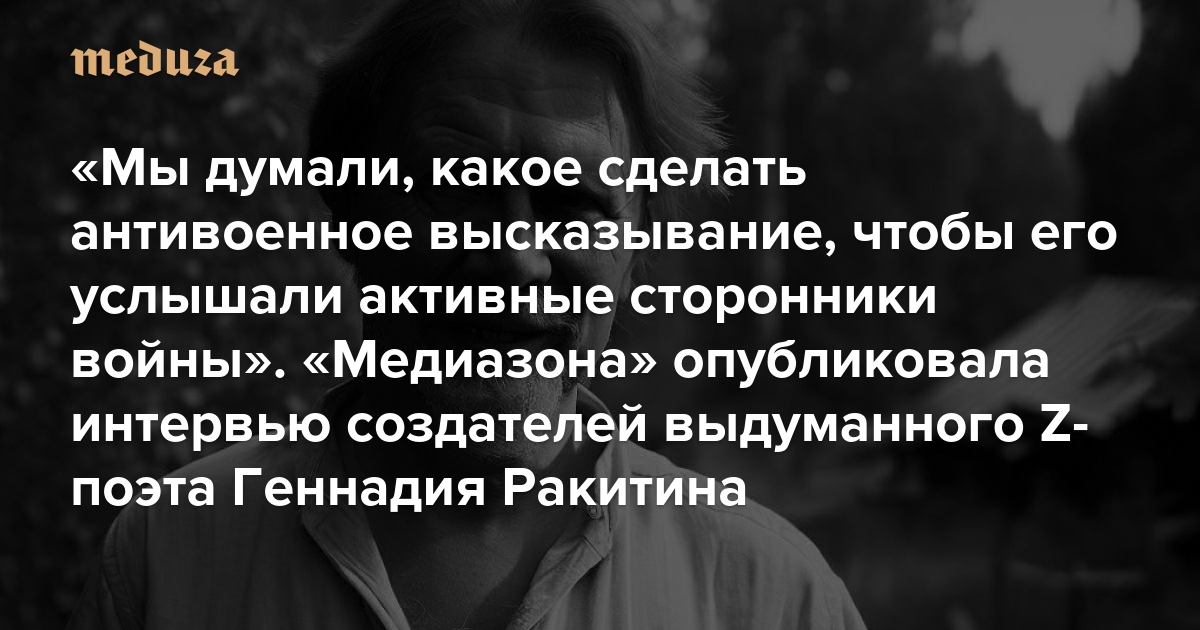 «Мы думали, какое сделать антивоенное высказывание, чтобы его услышали активные сторонники войны» «Медиазона» опубликовала интервью создателей выдуманного (и популярного) Z-поэта Геннадия Ракитина