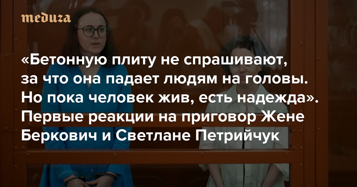 «Бетонную плиту не спрашивают, за что она падает людям на головы. Но пока человек жив, есть надежда» Первые реакции на приговор Жене Беркович и Светлане Петрийчук