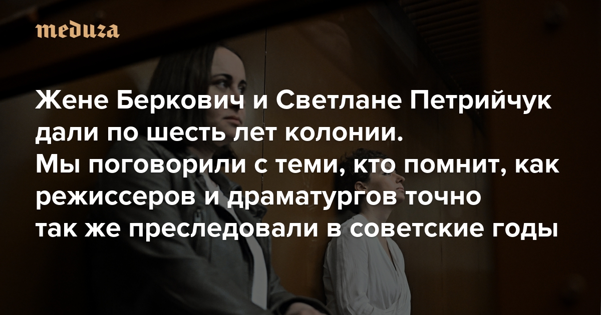 «Все мы знаем, что случилось с Мейерхольдом» Жене Беркович и Светлане Петрийчук дали по шесть лет колонии. Мы поговорили с теми, кто помнит, как режиссеров и драматургов точно так же преследовали в советские годы