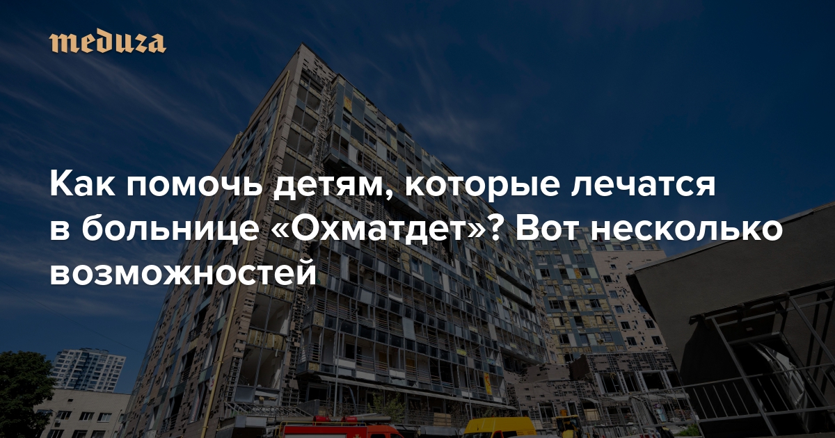 8 июля 2024 года российская ракета попала в «Охматдет» — крупнейшую детскую больницу в Киеве. В результате погибли два человека, 32 ранены. Среди пострадавших — восемь детей. Фотографии разрушенного здания и детей, вынужденных во время химиотерапии находиться на улице, на многих произвели сильное впечатление — смотреть на это очень больно. Если вы хотите помочь сотрудникам и пациентам «Охматдета», это можно сделать разными способами.