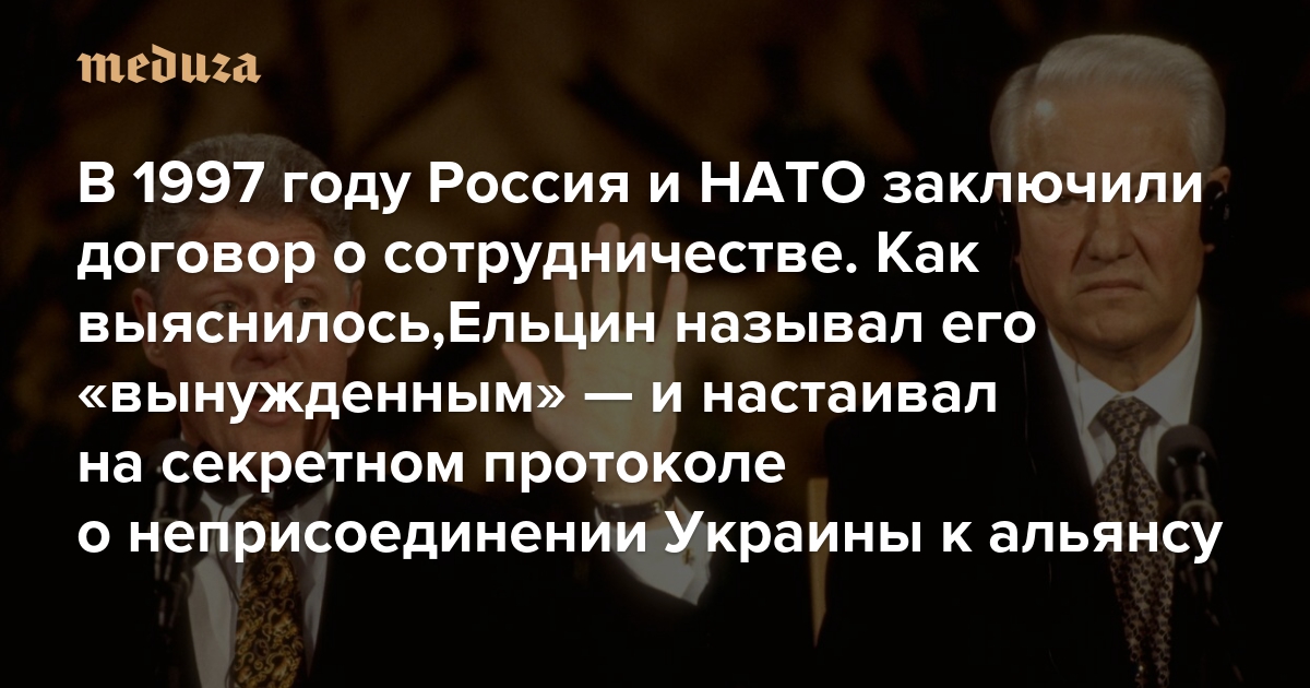 В 1997 году Россия и НАТО заключили договор о сотрудничестве. Считалось, что от него выиграли все Теперь выяснилось, что Ельцин называл договор «вынужденным» — и настаивал на секретном протоколе о неприсоединении Украины к альянсу