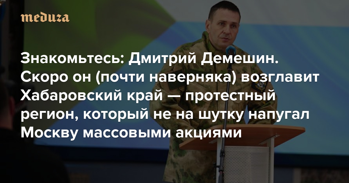 «Маска человека приросла к лицу силовика» Знакомьтесь: Дмитрий Демешин. Скоро он (почти наверняка) возглавит Хабаровский край — протестный регион, который не на шутку напугал Москву массовыми акциями за Сергея Фургала