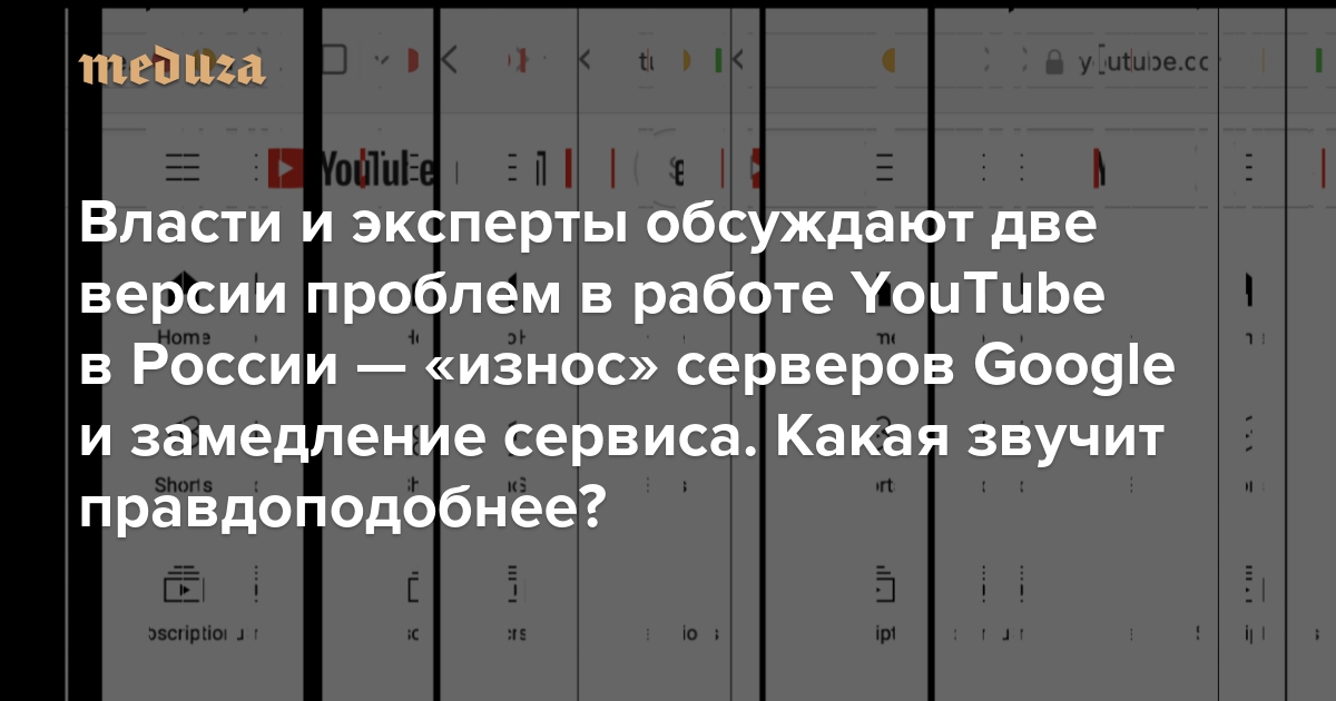 Власти и эксперты обсуждают две версии проблем в работе YouTube в России — «износ» серверов Google и искусственное замедление сервиса. Какая звучит правдоподобнее? Кажется, у нас уже есть однозначный ответ