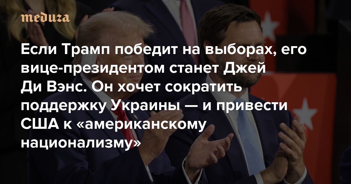 Если Трамп победит на выборах, его вице-президентом станет Джей Ди Вэнс. Когда-то он называл нынешнего начальника «американским Гитлером» и насильником А теперь хочет сократить поддержку Украины — и привести США к национализму