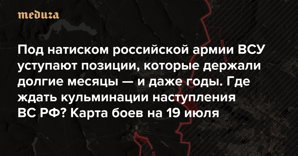 Под натиском российской армии ВСУ уступают позиции, которые держали долгие месяцы — и даже годы Где ждать кульминации наступления ВС РФ? Карта боев на 19 июля