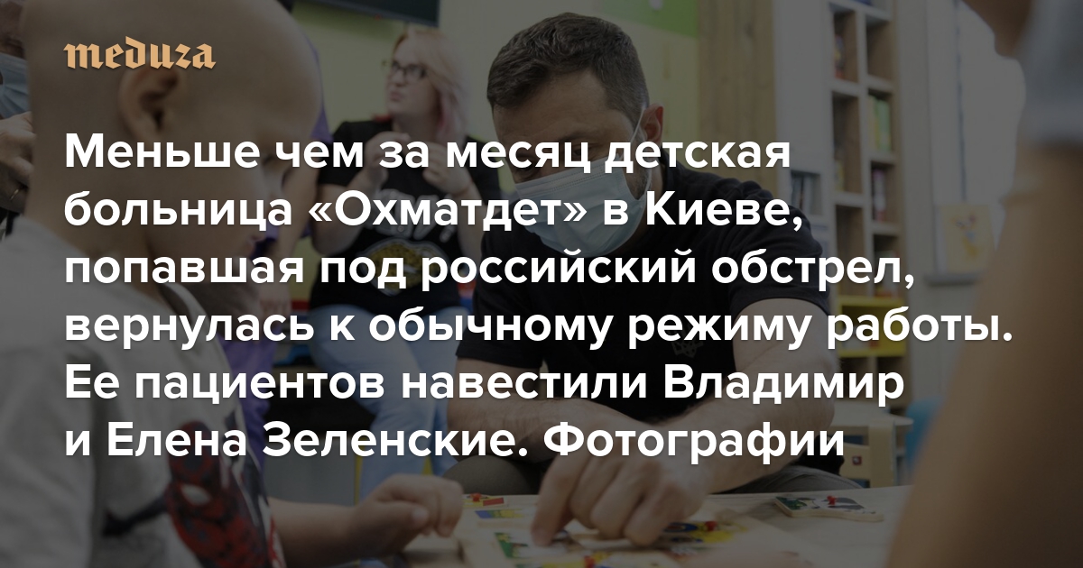 Меньше чем за месяц детская больница «Охматдет» в Киеве, попавшая под российский обстрел, вернулась к обычному режиму работы Ее пациентов навестили Владимир и Елена Зеленские. Фотографии