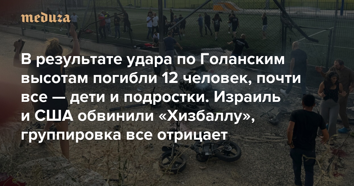 В результате удара по Голанским высотам погибли 12 человек, почти все — дети и подростки. Израиль и США обвинили «Хизбаллу» Группировка все отрицает, но перед этим она объявляла об обстреле военной базы поблизости