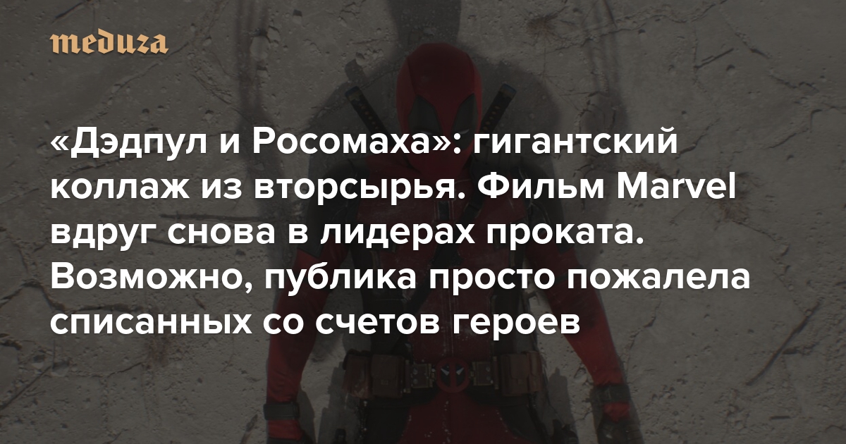 «Дэдпул и Росомаха»: гигантский коллаж из вторсырья Фильм Marvel — не слишком смешной и оригинальный — вдруг снова в лидерах проката. Возможно, публика просто пожалела списанных со счетов героев