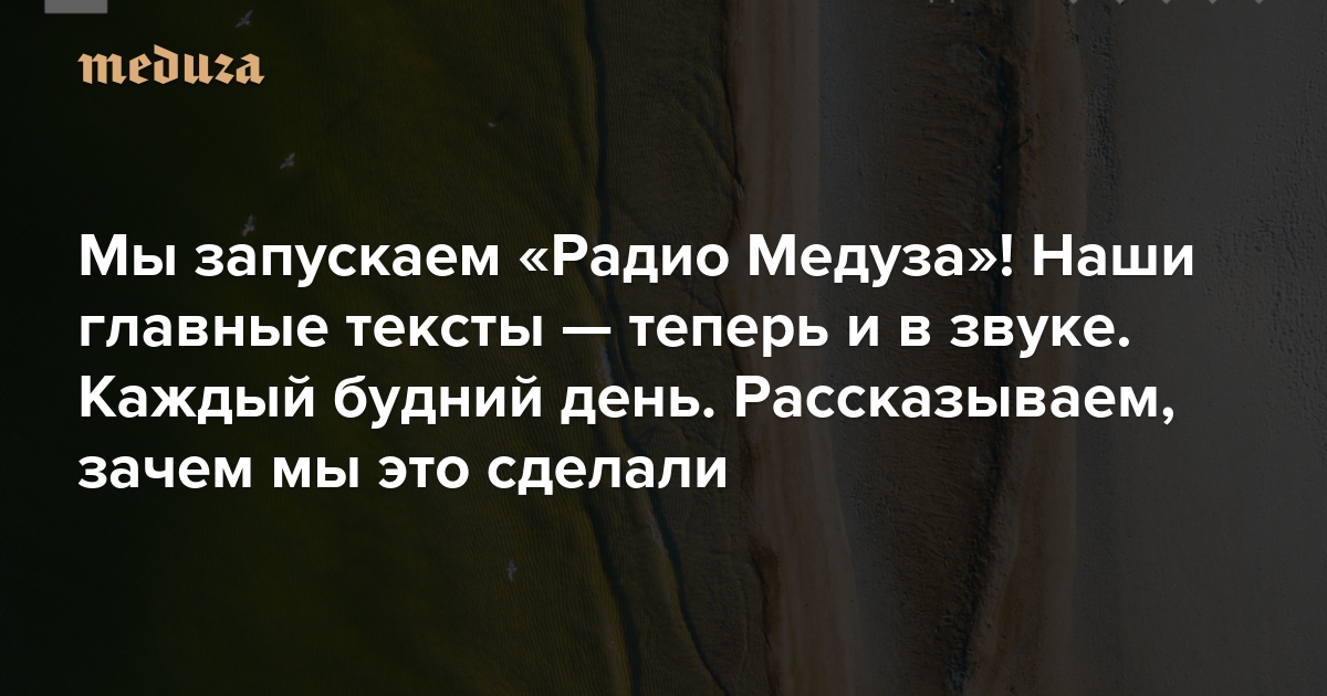 Внимание: мы запускаем «Радио Медуза»! Наши главные тексты — теперь и в звуке. Каждый будний день. Рассказываем, зачем мы это сделали