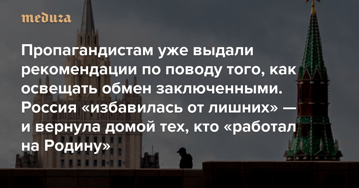 Пропагандистам уже выдали рекомендации по поводу того, как освещать обмен заключенными Они будут рассказывать, что Россия «избавилась от лишних» — и вернула домой тех, кто «работал на Родину»