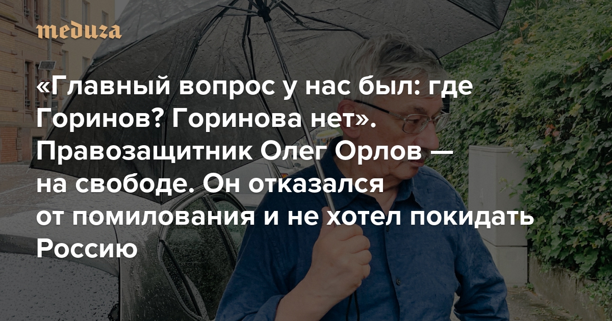 «Главный вопрос у нас был: где Горинов? Горинова нет» Правозащитник Олег Орлов — на свободе. Он отказался от помилования и не хотел покидать Россию