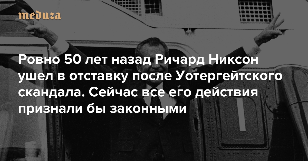 Ровно 50 лет назад Ричард Никсон ушел в отставку после Уотергейтского скандала Сейчас все его действия признали бы законными