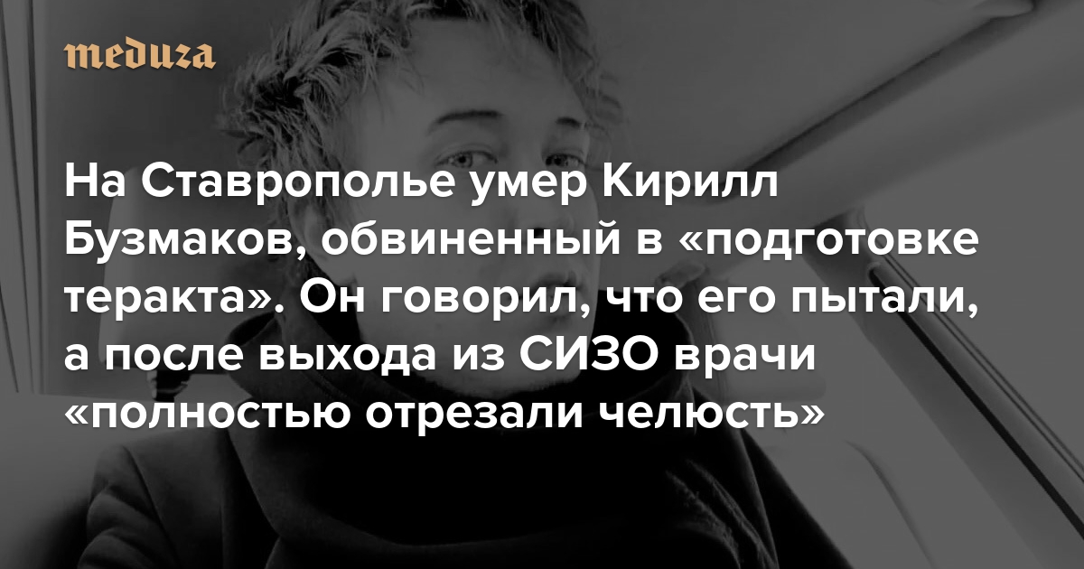 На Ставрополье умер Кирилл Бузмаков, обвиненный в «подготовке теракта» Он говорил, что в СИЗО его пытали и «сгноили» — а когда он вышел под домашний арест, врачи «полностью отрезали челюсть»