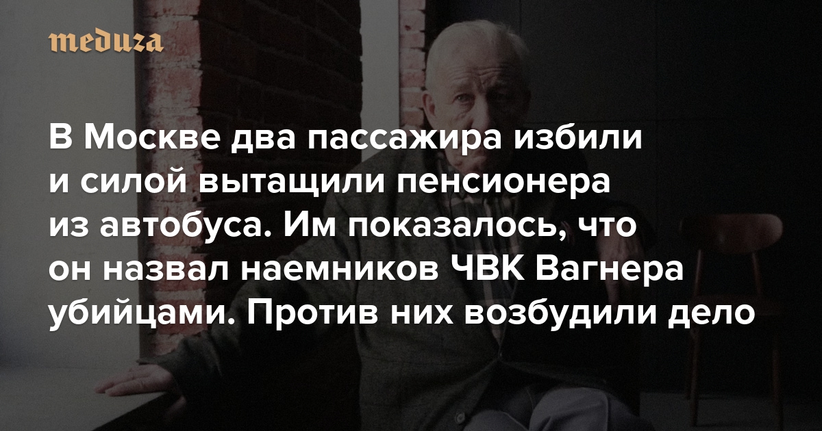 «Я сожалею, что пришлось родиться в стране, где людей за людей не считают» В Москве два пассажира избили и силой вытащили 87-летнего пенсионера из автобуса. Им показалось, что он назвал наемников ЧВК Вагнера убийцами. Против них возбудили дело о хулиганстве