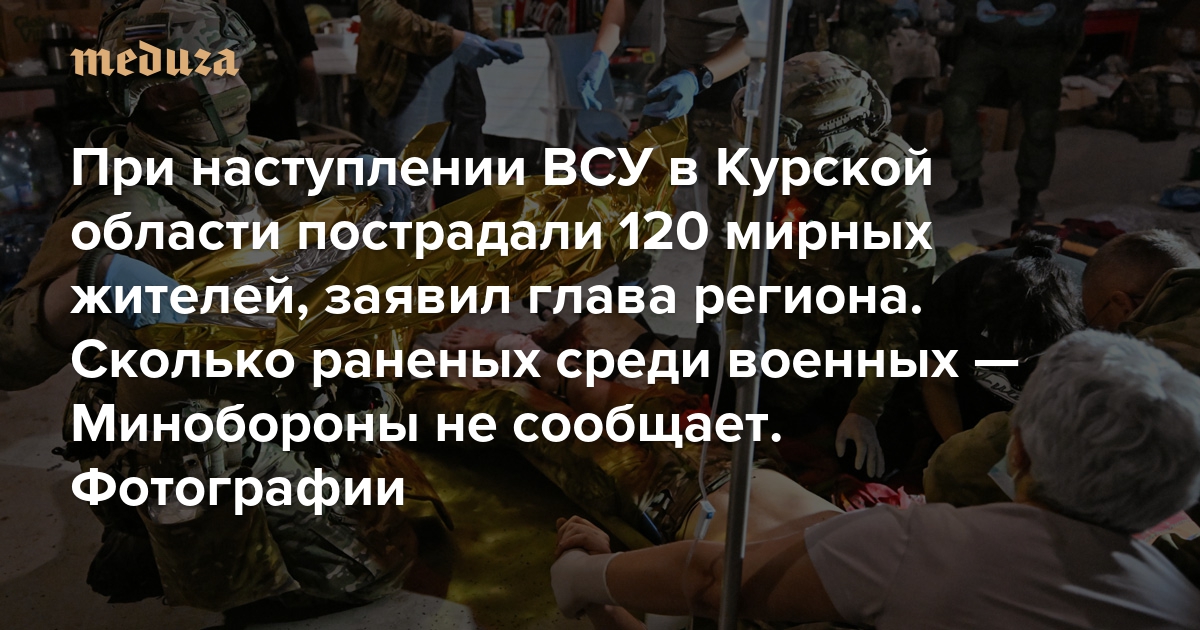 При наступлении ВСУ в Курской области пострадали 120 мирных жителей, заявил глава региона. Сколько раненых среди солдат — Минобороны не сообщает Пострадавшим военным пытаются помочь в полевом медпункте. Фотографии